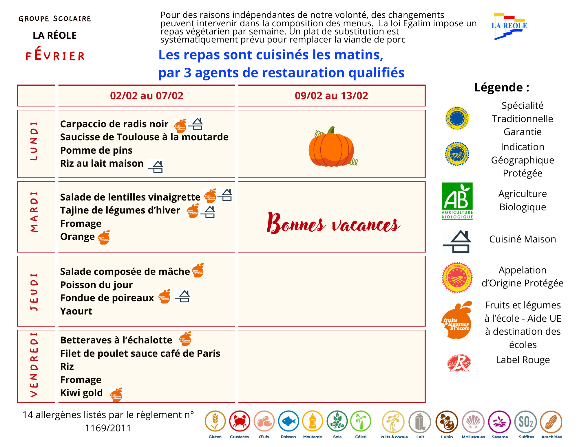 Le menu scolaire du mois