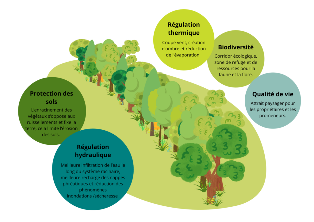 Les haies champêtres sont de véritables alliées de la biodiversité. Elles offrent un habitat essentiel pour de nombreuses espèces animales (oiseaux, insectes, petits mammifères…), favorisent la pollinisation, limitent l’érosion des sols, améliorent la qualité de l’eau et contribuent à la beauté de nos paysages. C’est un geste simple et efficace pour l’environnement !